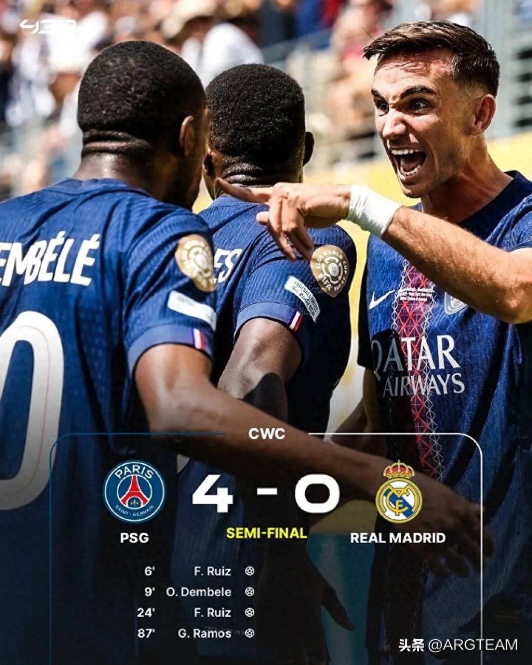 历史性的胜利!巴黎圣日耳曼4-0击败皇家马德里,晋级世俱杯决赛
